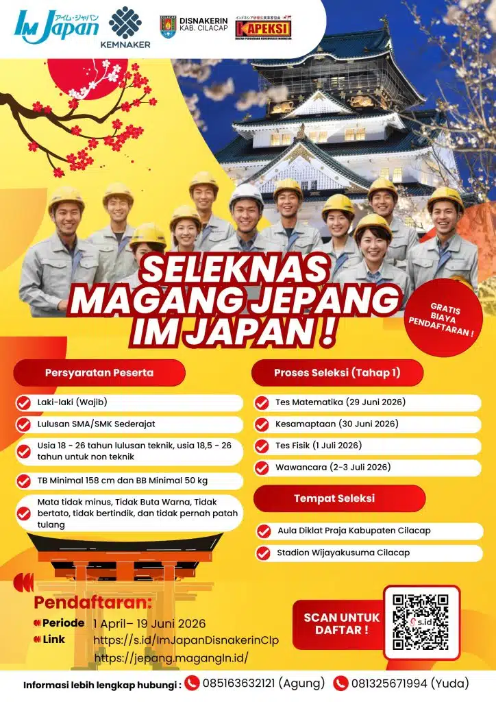 Pemalang – Pemerintah Kabupaten Pemalang melalui Dinas Tenaga Kerja (Disnaker) bekerja sama dengan Kementerian Tenaga Kerja RI, IM Japan, dan IKAPEKSI menggelar seleksi Magang Jepang Tahun 2025 di Pendopo Kabupaten. Senin (1/12/25) Bupati Pemalang dalam sambutannya yang dibacakan Kepala Dinas Tenaga Kerja Umroni mengatakan, program magang Jepang tersebut merupakan salah satu program unggulan pemerintah yang […]